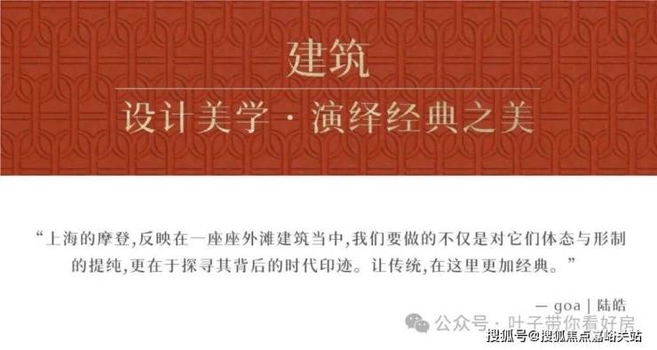项目以历史风貌保护为核心原则,通过围合式街区布局重现“风车状”里弄巷道,依托“内生有序”的动线格局,精准还原外滩原生街区肌理,营造出独树一帜的空间韵律。建筑设计上,项目萃取外滩风貌建筑精髓,以折衷主义风格为基底,融入现代化比例与线条,勾勒出兼具ART DECO美学的建筑封面。
