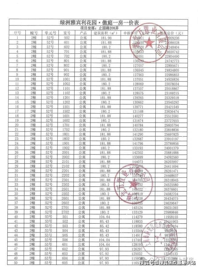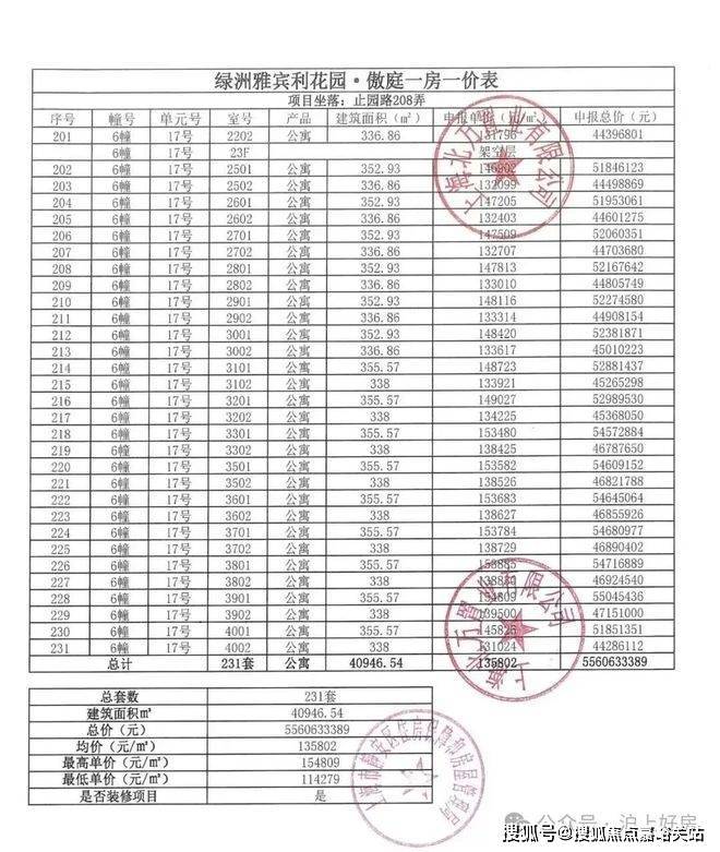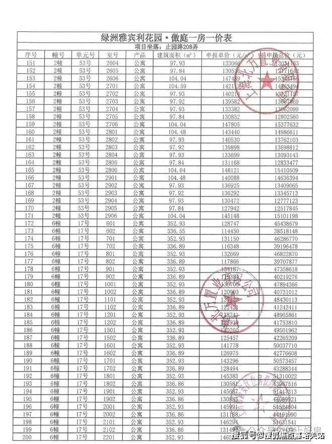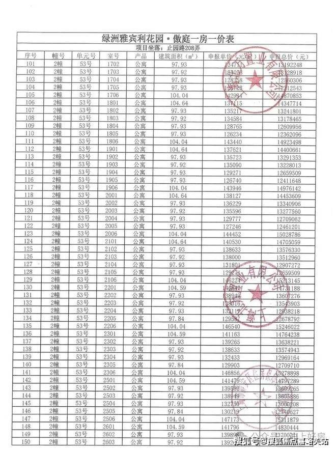万科中兴傲舍一房一价表▼