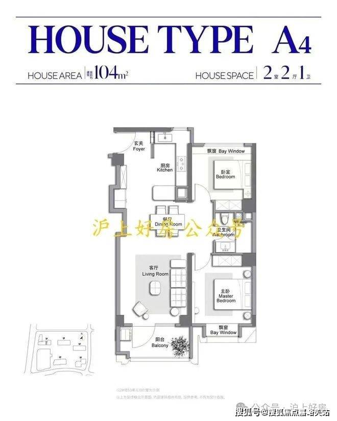 建面约104㎡2房户型