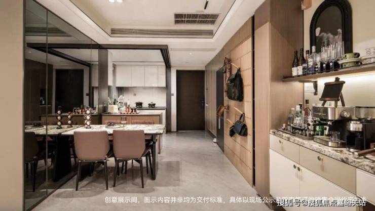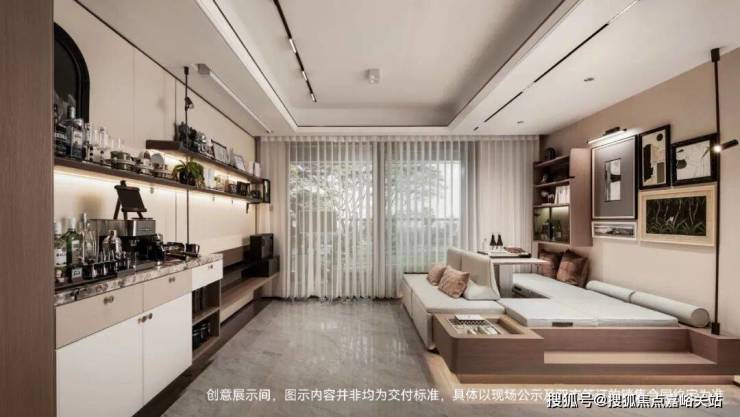 从进门开始,到电视机墙旁边的日咖夜酒吧台,都被设计成了储物空间。