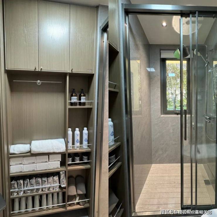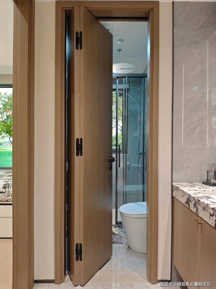 这次沁香园在所有户型的卫生间上都做了一些「折叠」的设计。比如卫生间的门是双折的,淋浴间移门是三移门: