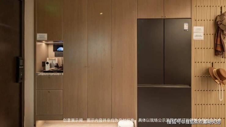 并且,玄关柜和鞋柜的部分做了非常多的功能分区设计,小到隐藏的穿鞋凳、伞架和扫地机器人,大到除臭精灵、长靴、行李箱,都能放进这个空间内。