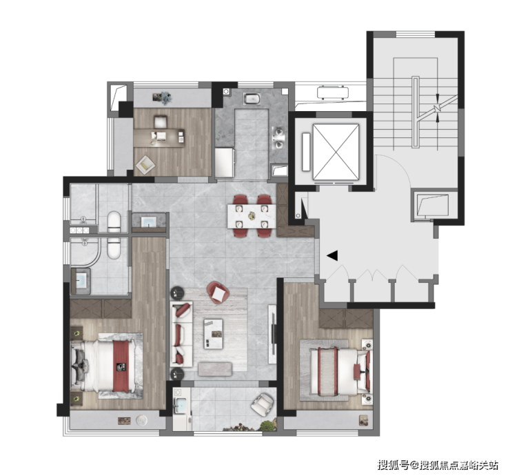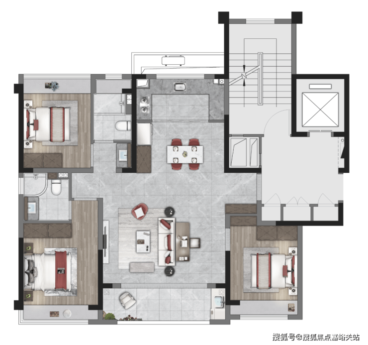 整个动线减少了非功能区如走廊、拐角的面积。每个功能区都十分的方正,对于家具的摆放可以游刃有余。凭借高空间利用率,让家的空间体验“变大”。