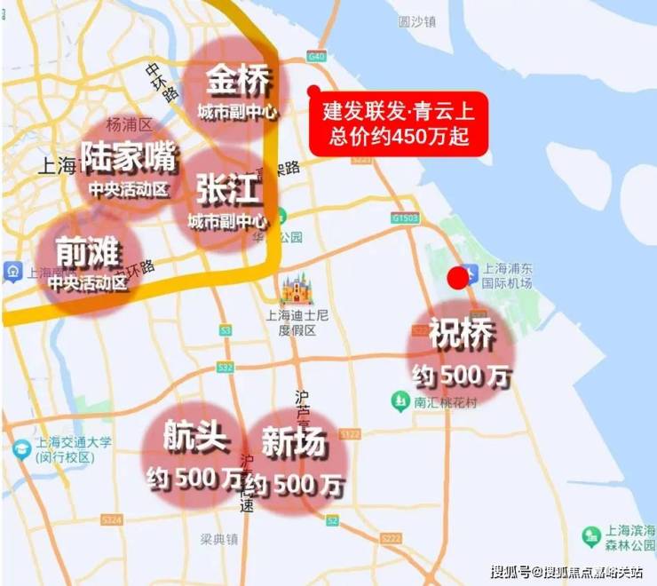 「建发联发·青云上」直线距离外环仅约3公里,通过北侧的五洲大道可直抵中环。在目前浦东外环旁区域的新房价格体系中,三林约10万+、周浦约6万+、康桥约6.6万+、唐镇约7万+(来源:根据网上房地产公示数据整理)。从区位上来看,该项目可以匹配约600-1000万才有的地段价值。