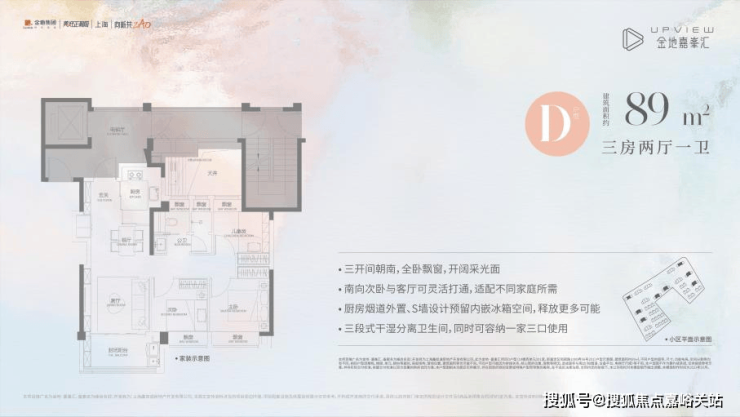 先来看看建面约89㎡三房两厅一卫(D户型),不仅功能完备,而且很好地把控了总价,约350万起即可上车高配品质三房,空间感十足!金地嘉峯汇售楼处电话:400-8894-638☑☑☑