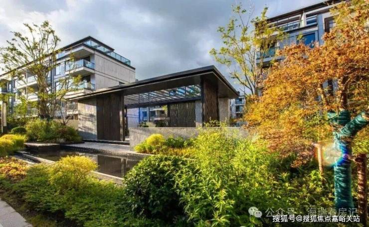 景观巧妙利用高差以中式院落空间递进关系为切入点,打造“【府】-【园】-【宅】”三重空间序列,形成“私密-半私密-半公共-公共空间”,打造三进归家动线。