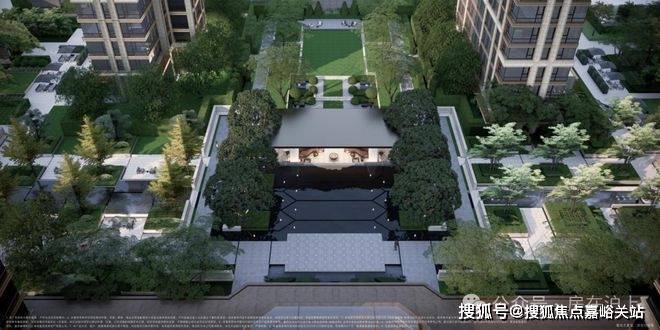 项目另一大亮点在于东侧主入口的设计。不同于常规门头,项目采用四进式布局:从标志性的“玖系”隐奢门头启程,经过仪式感十足的公馆草坪,再到营造社交氛围的聚场空间,层层递进,步步皆景。