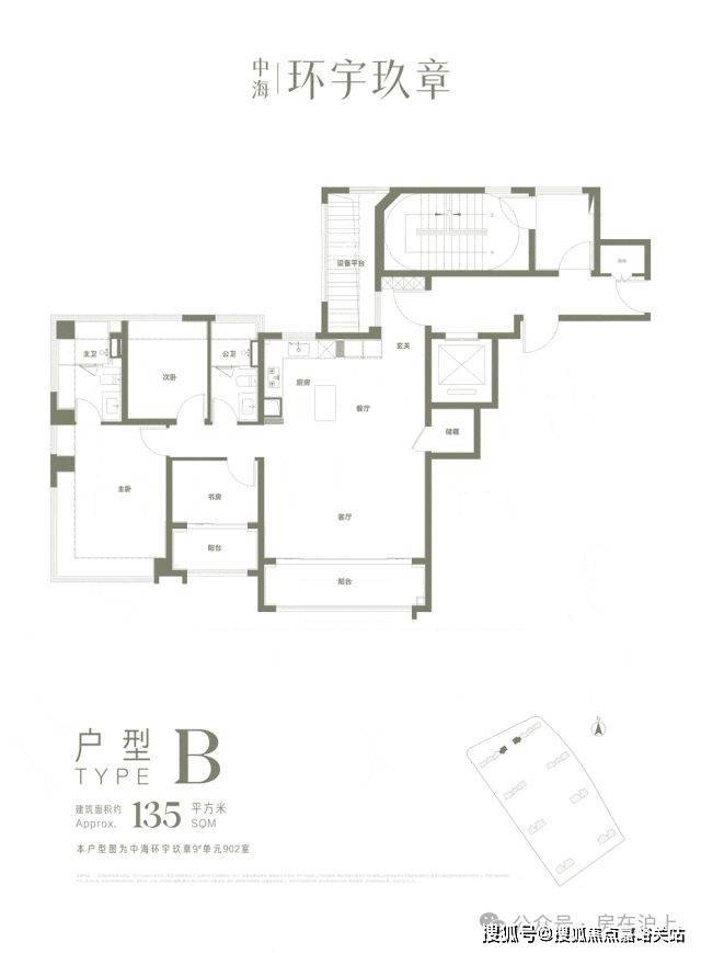 约144m户型 约13.95米南向面宽+3.3米层高,空间感爆棚!边套主卧配 270°转角全景飘窗!