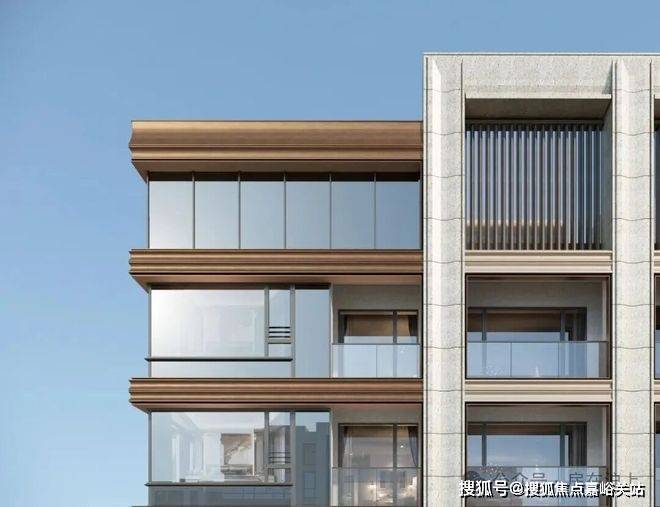 外立面可视部分均采用古铜色金属铝板、米黄色铝板或石材,边套户型更配备270°大转角飘窗。从正面、侧面到背面,立面设计保持精致统一,四面皆臻于完美,彰显高端质感。
