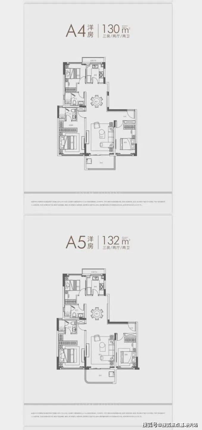 ①、建面约120㎡3房: