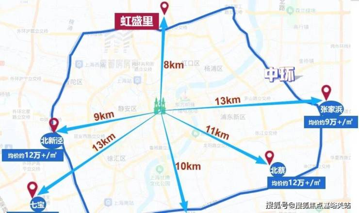 但到人民广场的距离却更远了!例如位于上海南部、浦东三林板块的项目,距人民广场直线距离约10公里,价格却要12万+/㎡,还有位于上海西面的北新泾项目、上海东面的北蔡项目等等。