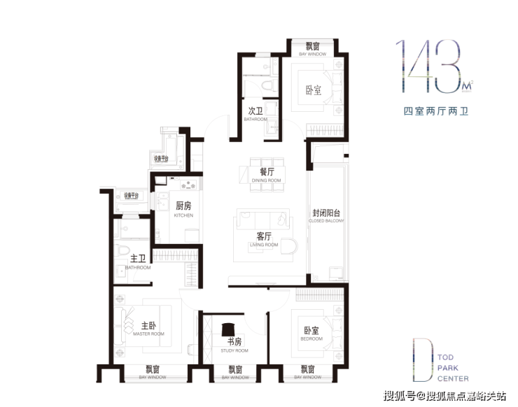 建面约143㎡4房:全能景观边厅大宅!