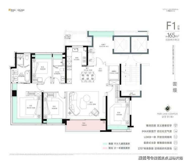 建面约165㎡的“公园头排全景舱”,以 类一梯一户 的尊崇仪式感、 四开间朝南 的极致采光、 LDKB一体化+IMAX级宽厅 的创新布局,打破了传统空间的界限。 超大阳台、全屋飘窗 带来了 约270°环幕视野 ,将公园盛景尽收眼底。 主卫双台盆、N+1百变空间 等设计,更是赋予了生活无限的可能与从容。