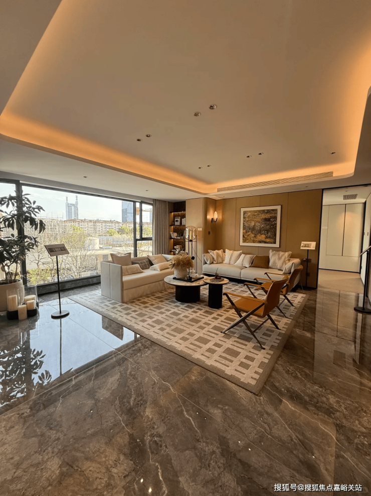 项目设计:新规迭代,美学与实用共生 建筑风格融合现代极简美学与高端人居质感,联排立面采用斜切面设计,浅色维纳多石材、灰色印度蓝石材与仿木纹铝板精妙搭配,搭配大面积玻璃幕墙,消弭建筑与自然的边界;洋房以钻石切割几何斜面为灵感,质感米色铝板搭配亮铜色点缀,单元大堂甄选优质石材,细节尽显匠心。项目以1.2低容积率打造纯低密社区,楼栋排布科学,楼间距开阔,保障每一户采光与视野。景观规划兼顾美学与实用,搭配下沉式庭院、流水瀑布等景观节点,绿植错落搭配,营造出雅致静谧的居住氛围,同时打造约1100㎡艺术会所与部分架空层泛会所,延伸生活场景。