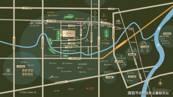 生态方面也很加分,[香樟荟]距离苏河十八弯海螺公园500米,距离金沙绿地公园700米。