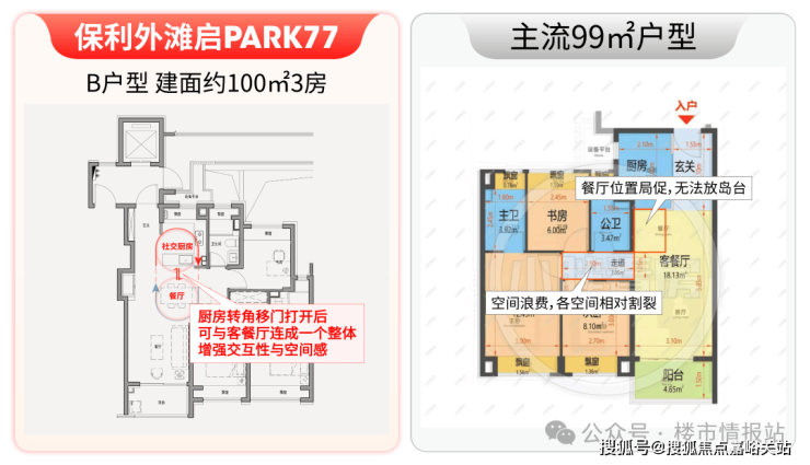 传统户型中约3平过道往往仅承担通行功能,而保利通过精准优化,将过道空间融入公共区域,让餐客厅更方正、面积更大。保利外滩启PARK77售楼处电话:400-8894-986🖼️🖼️