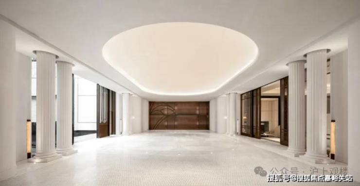 其中,星空顶泳池用 纯天然优质石材打磨的罗马柱点缀。这不仅仅是一个活动空间,更是一个艺术的门庭,让业主足不出户尽享法式惬意优雅。