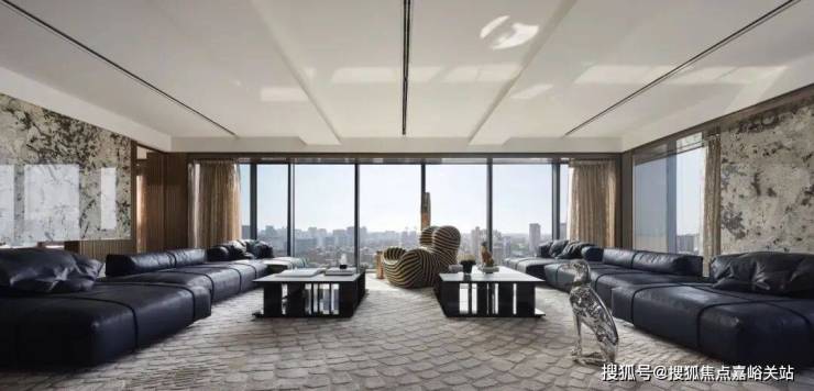 简洁有力的皮革家具充分彰显了空间的张力,金属色豹型装置如空间中灵动的一笔,增加了艺术性释放了松弛感。