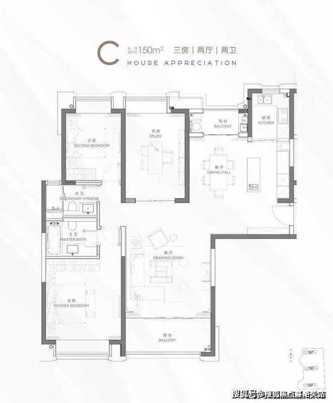 主力户型:2房133㎡、2+1房135㎡、3房150-154㎡