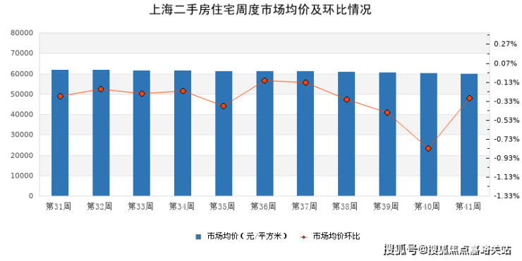 价格方面,市场仍面临下行压力。根据诸葛找房数据研究中心的监测,上周上海二手住宅市场均价为59912元/平方米,环比微降0.3%,延续了近期的调整态势。这一现象表明,尽管成交有所放量,但卖方在议价中仍多以价换量,市场整体处于“以价换量”阶段。