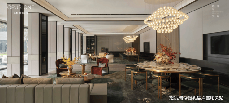 这客厅既是 270°全景舱厅,无论全家在餐桌前欢聚一堂,还是孩子们在客厅嬉戏,一抬头便是以江景和城市为主题的巨幅油画。