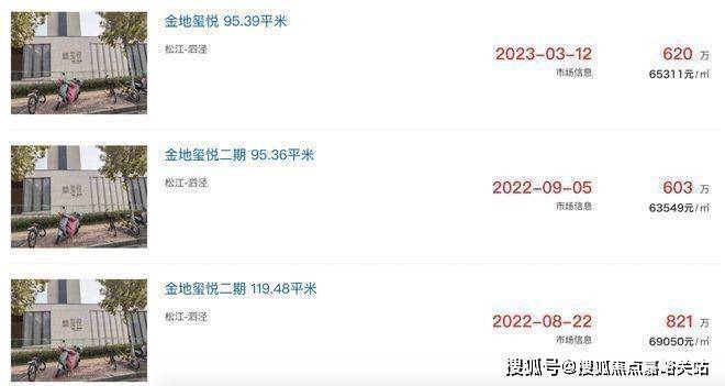 其他次新小区,比如泗泾大盘金地玺悦,二手房成交价也都在6.3-6.9万/㎡之间。