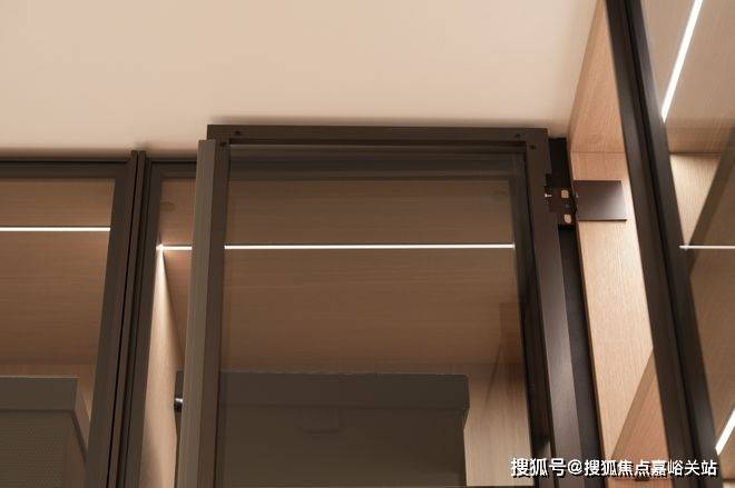 极简审美,从背景墙开始一路延展, 无边框隐形门,以及简化的金属踢脚线 ,让立面保持完整如一。