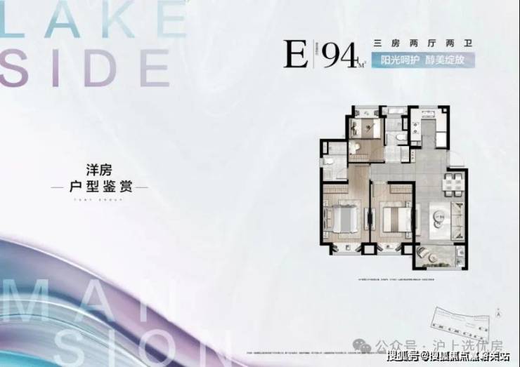 建面约94㎡三房两厅一卫