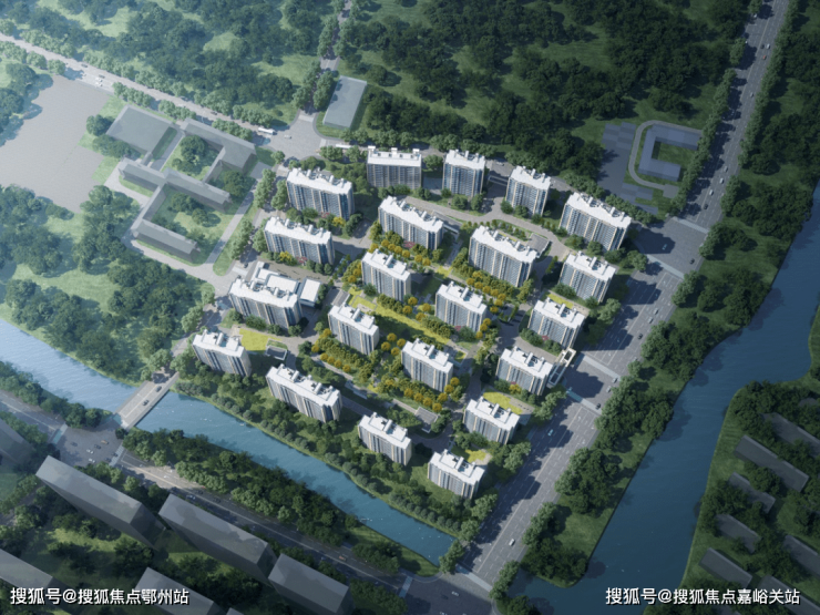 整个项目是容积率仅约1.8的低密滨水住区,21栋住宅错落有致地排开。