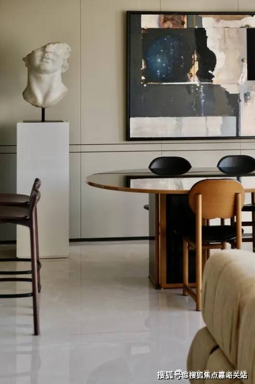 本次展览新增了诸多跨越时间的经典家居艺术品,更是特别选用Flexform 家具作为客厅区域的核心亮点,多款由设计大师 Antonio Citterio 设计的经典作品,在1996年设计的A.B.C.扶手椅,以现代主义风格为灵感,采用黑色真皮与金属管结构,以低矮座椅展现当代美感。而Carlo Colombo设计的Alison扶手椅,则融合了斯堪的纳维亚传统与当代设计,以实木结构与丰厚座椅柔软贴合,精巧的比例适配多种空间环境,具有超越时间和时尚的魅力。