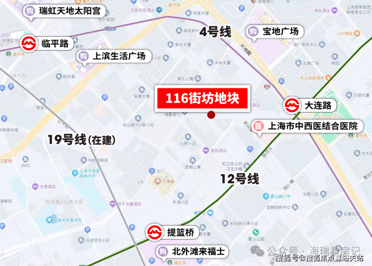 交通方面,项目位于上海内环内,距离轨交4号线大连路直线距离约250米,周边4、12以及在建19号线三轨交汇,交通便捷。