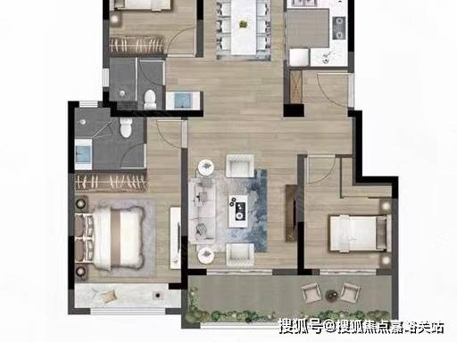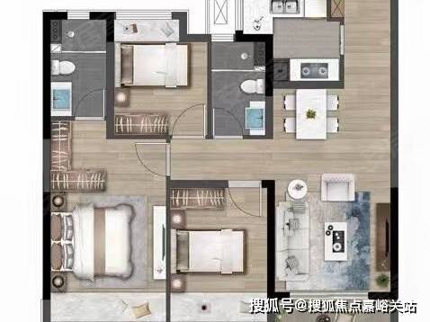97㎡三房:优点是双卫、套房、功能全、采光佳;缺点是相比两房总价略高,适合刚改家庭。