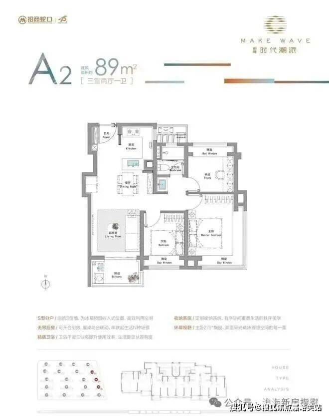 建面约89㎡3房户型:东边套主卧配置约270°双向采光飘窗、S墙设计,主力总价仅约450万级,首付约90万起!招商时代潮派售楼处电话4008569058☑️☑️