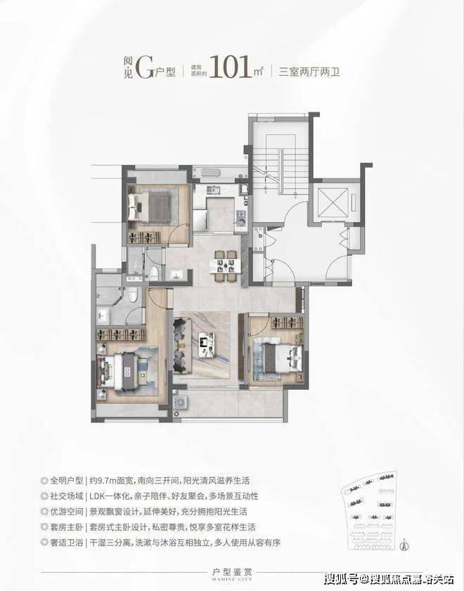 同时内向造景,景观最大化,共享景观资源,实现楼栋均好性。园林式布局,通过多重景观营造层次丰富的趣味空间。