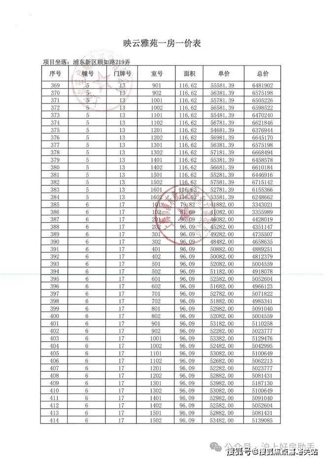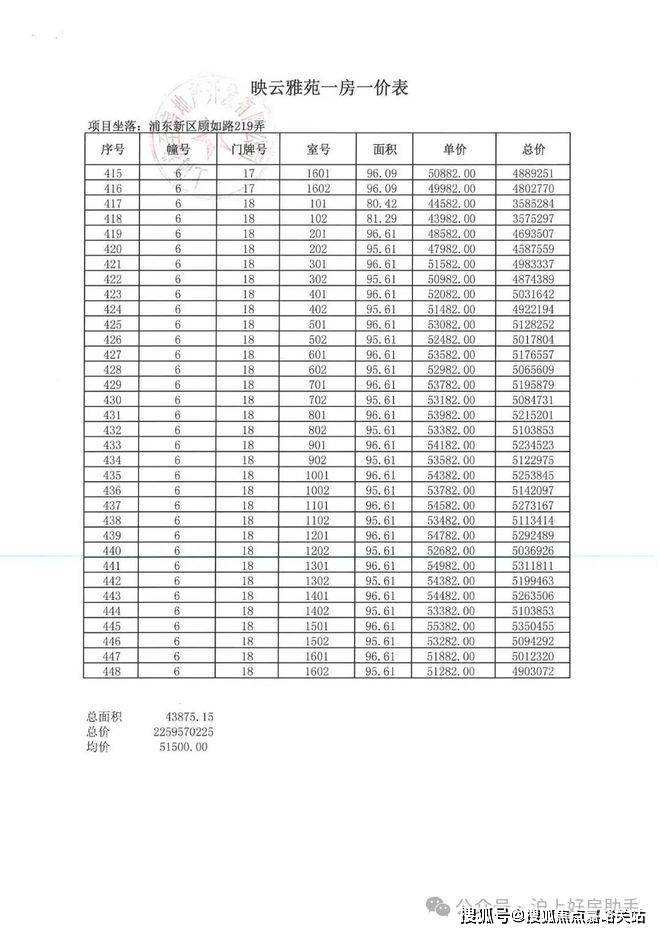 项目一房一价表▼