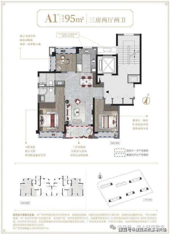 建面约95㎡3房2厅2卫▼
