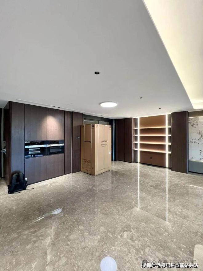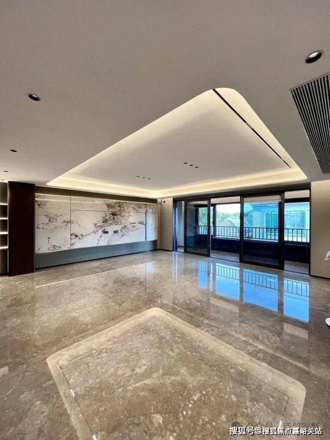 项目由5幢4层平层公寓、5幢3层别墅及1幢保障房组成。平层公寓45套,面积为170-350㎡,别墅23套,地上面积400㎡-690㎡。经典三段式别墅立面及大窗墙比,实现居住与自然的延伸;中灰色石材为基座,奢石宁静与土地矜贵互为映衬。中灰色石材的厚重感,深灰色铝板的舒展度,“安缦金”高奢质感勾勒边框,与蓝眼睛光面石砖、冰花蓝光面石材的交织下,呈现出“天光云影”的意境。