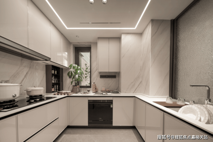 U型厨房设计,操作台面宽敞阔绰,即便两三个人同时做饭,空间感也绰绰有余!
