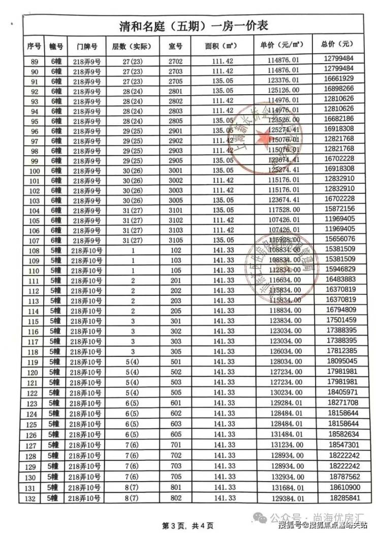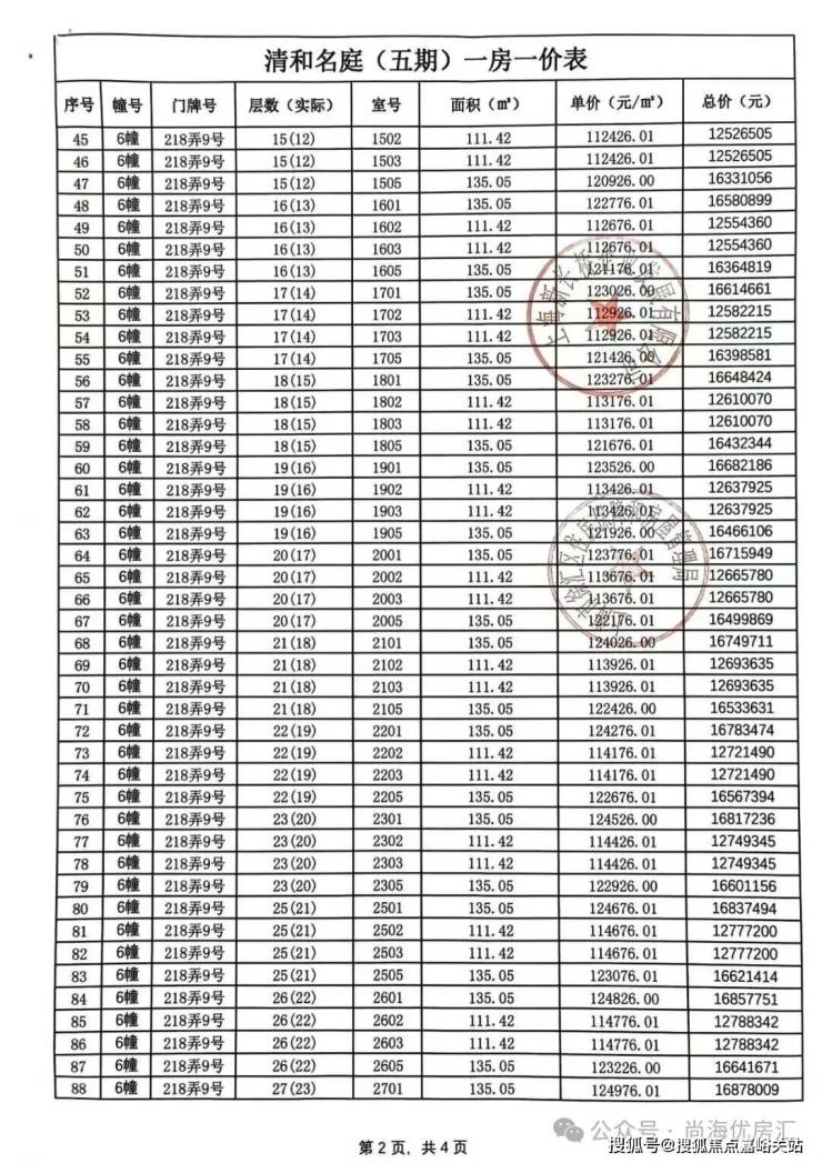 向上滑动阅览一房一价表