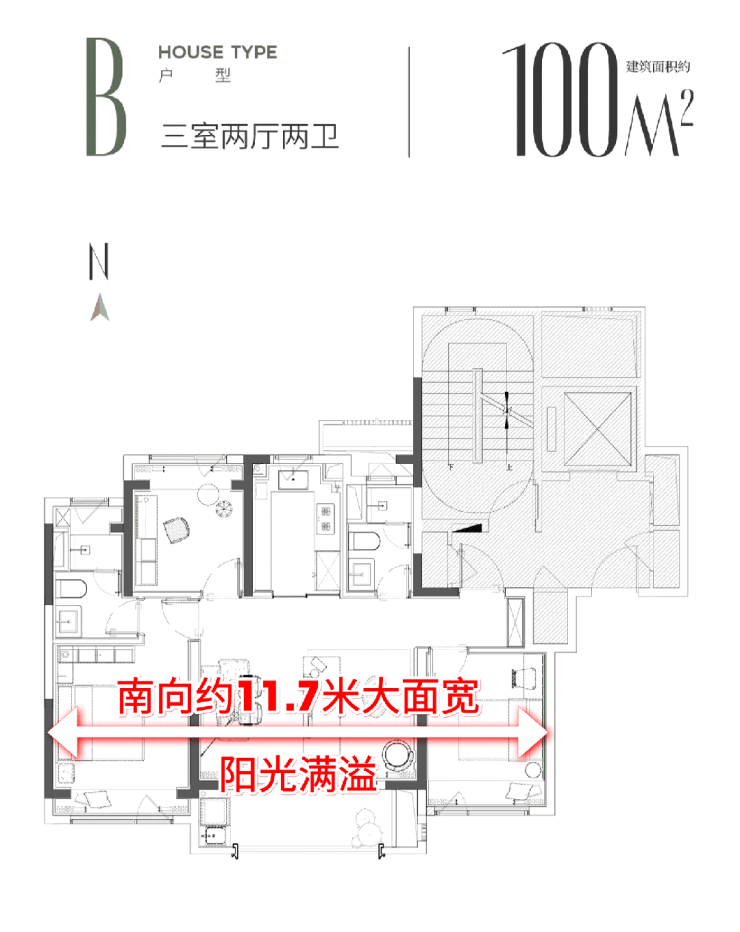 高层户型设计都是飞机户型,南北通透、户型方正、空间利用率MAX、类一梯一户。