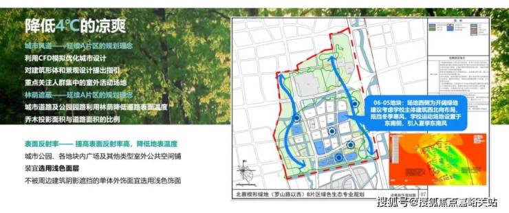 并结合城市公园设置林荫慢行道,鼓励绿色出行;城市设计引入凉爽街区的概念,利用楔形绿地的优势引导城市风道,对城市广场公园铺装、建筑表皮反射率进行引导。