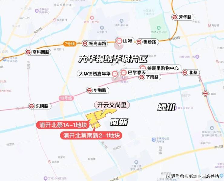 在大华南侧过川杨河是南新、绿川片区,其中, 浦开北蔡1A-1地块和浦开北蔡南新2-1地块、开云艾尚里就位于南新片区。