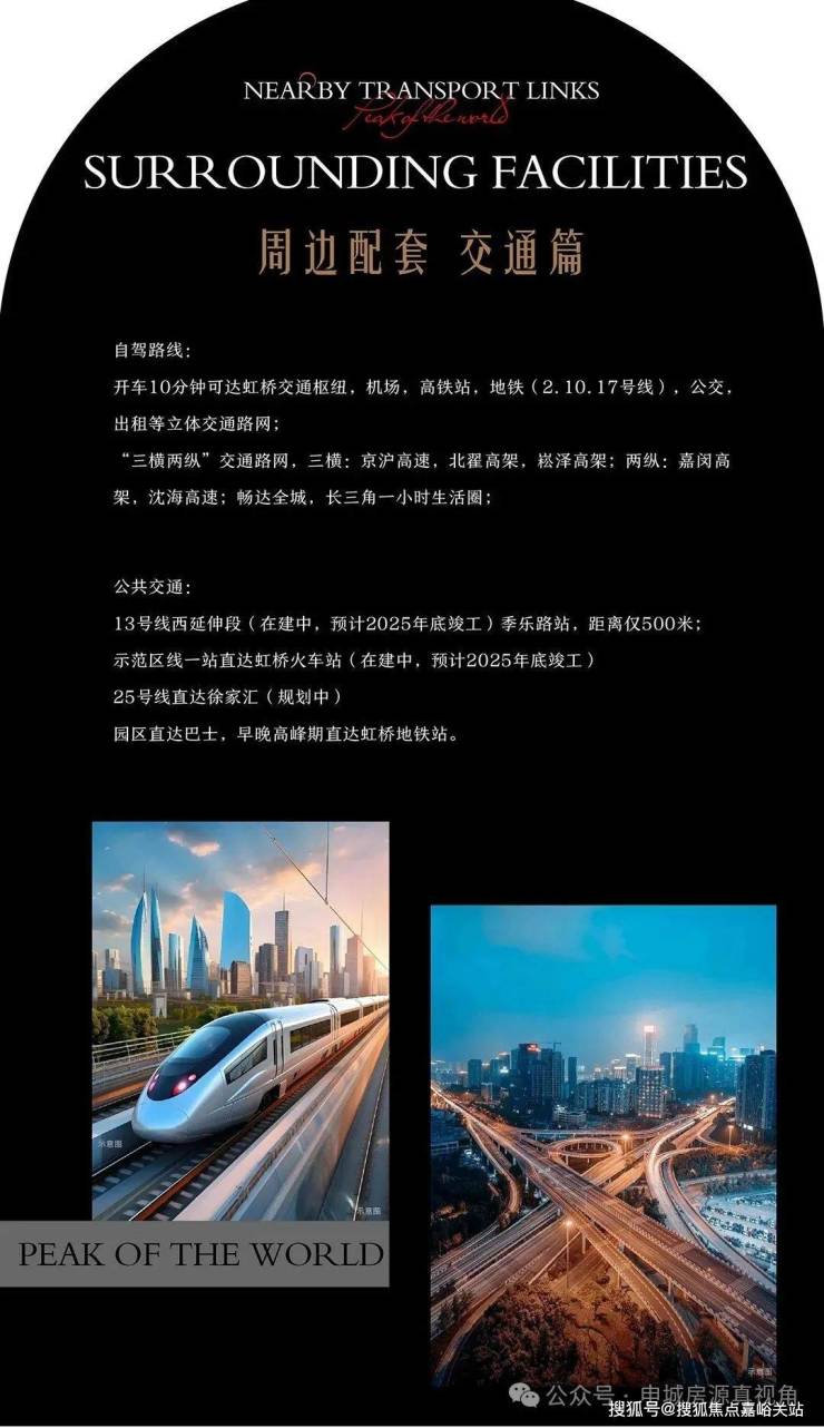 峰度天下位于上海虹桥商务区的南虹桥核心前湾板块,汇集国际高能配套,数字经济,生物医药,文创电竞三大产业布局,国际医学中心配置1个医技中心和7家高端医院,7所国际学校,3大超级商超,京沪高速,北翟高架,崧泽高架,嘉闵高架,沈海高速三横两纵交通路网,虹桥交通枢纽机场,高铁,地铁,公交,城际大巴等立体交通,13号线季乐路站在建(距离仅500米),且有园区巴士早晚高峰直达虹桥高铁站,无限便利。