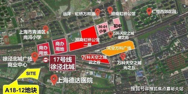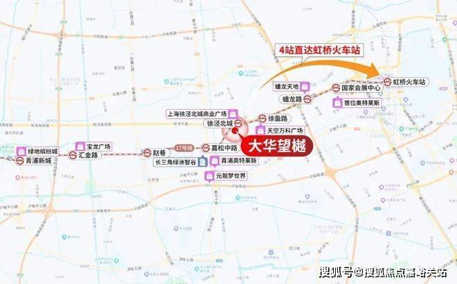 项目地块北侧紧邻17号线徐泾北城站,1站可达徐盈路天空万科广场,2站至蟠龙古镇商业区,3站直达国家会展中心,4站即达虹桥枢纽。