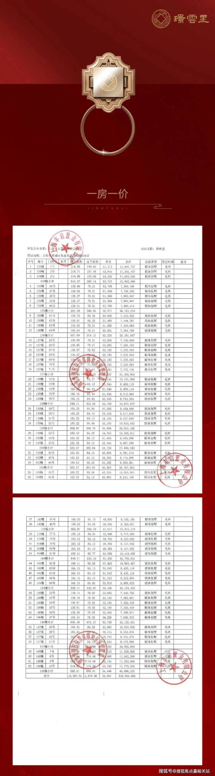 项目一房一价表▼