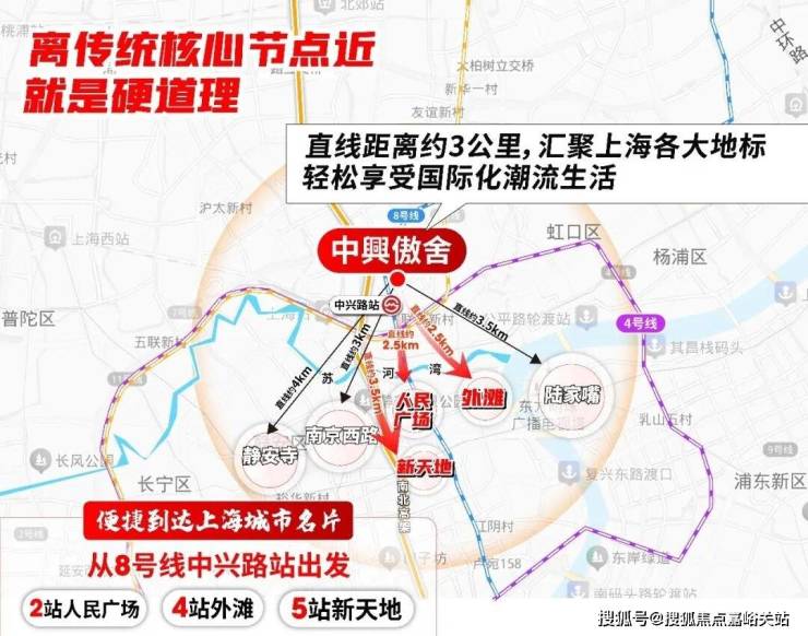 项目打造 五轨交汇 TOD 枢纽 :步行约 280 米即达地铁 8 号线中兴路站;800 米内覆盖 3/4 号线宝山路站、12 号线曲阜路站、13 号线自然博物馆站;在建的 19 号线未来也将进一步丰富区域轨交选择。