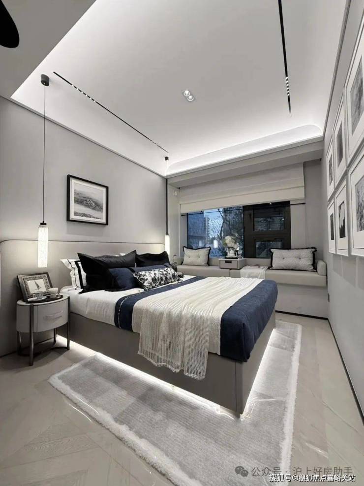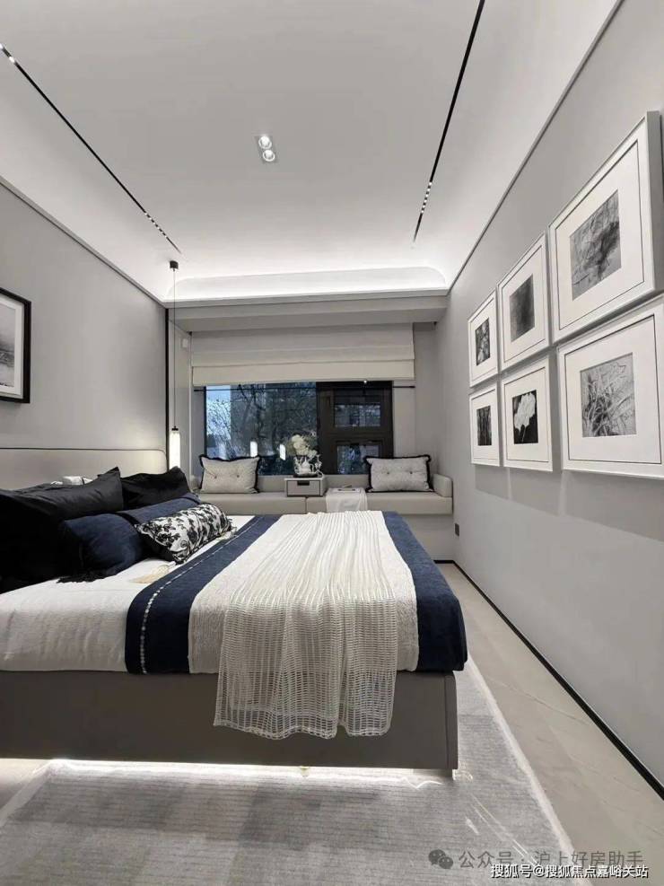 其中主卧的270°转角飘窗就有约5.7m²,通过与外立面的结合,直接做了梳妆台和储物柜,拓展了飘窗的实用性。