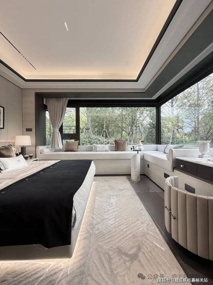 项目本次的边套设计了大量的飘窗、转角飘窗、主卧270度落地窗等设计,所以整个立面运用了大量的玻璃,构建出了非常极致的窗墙比。