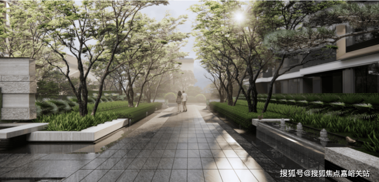 社区景观方面,项目以 "富林风华,十景多花园"为核心理念,通过现代设计语言重构《富林十景》的山水意象,将 "山、水、茶、酒、舟、市" 等江南文化符号有机融入空间序列营造 "一步一景,移步异景" 的沉浸式归家体验。