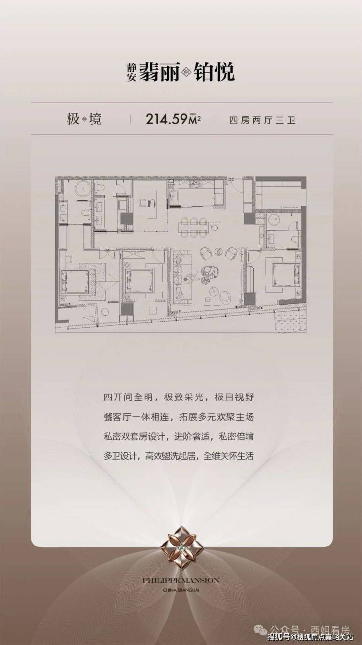 四开间全明,极致采光,极目视野餐客厅一体相连,拓展多元欢聚主场私密双套房设计,进阶奢适,私密倍增多卫设计,高效盥洗起居,全维关怀生活